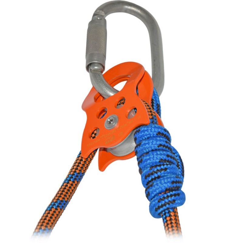 - Форма щёк с типичной формой нижнего обреза в виде юбки позволяет использовать схватывающие узлы на рабочем канате для самофиксации поднимаемых грузов или натягиваемых полиспастов.